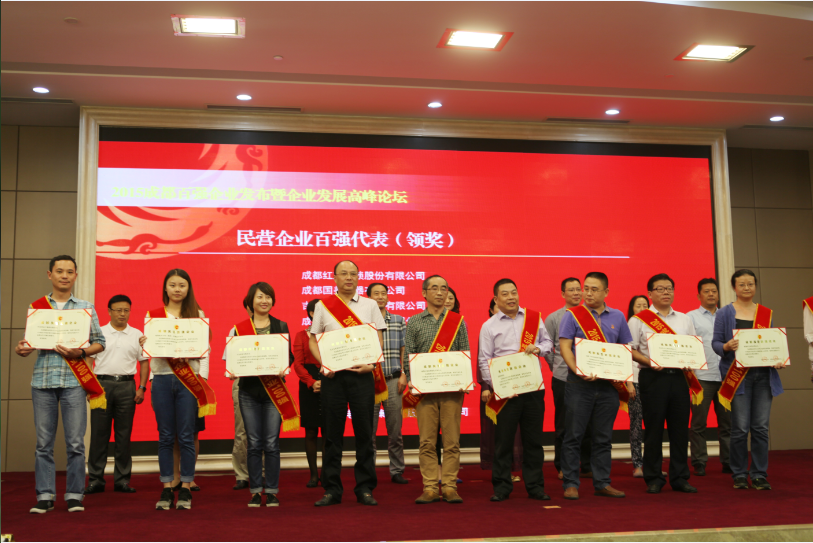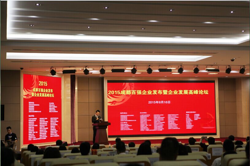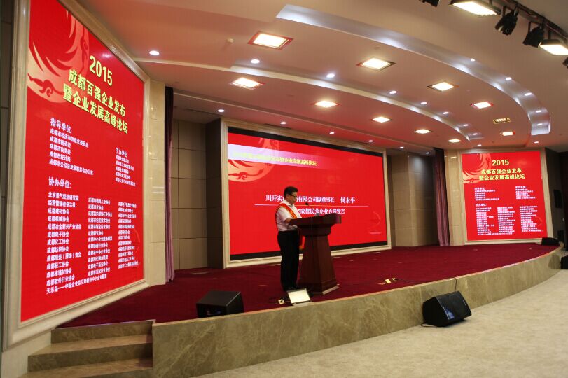 16日下午14點,2015成都百強企業發布會暨企業發展高峰論壇在天府國際金融中心會議室拉開帷幕,成都市經信委等相關單位領導以及來自成都各大企業代表、電視媒體等三百余人參加了此次會議。集團副董事長代表集團接受頒獎并作為民營企業代表發言。