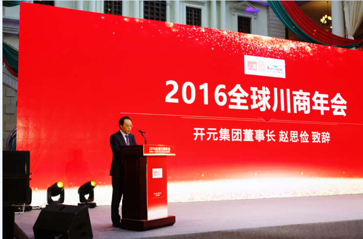 開元集團(tuán)作為此次盛會的獨家冠名單位,與出席會議的領(lǐng)導(dǎo)、學(xué)者和知名川商一起,共同見證了2016川商榮譽的巔峰時刻,集團(tuán)趙董事長代表開元發(fā)表重要講話。