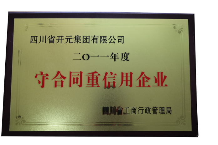 集團自成立以來一直以"信守合同,誠信經營" 為理念。今年,公司在四川省工商行政管理局組織開展的“2012年度守合同重信用企業”評選活動中,再次榮獲 “守合同重信用企業”稱號。這也是集團連續第三年獲得該稱號。