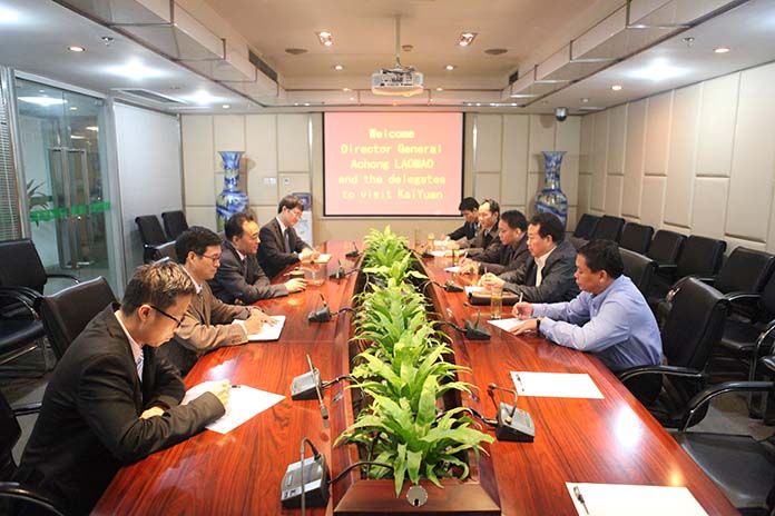 趙董事長首先對Achong Laomao局長的來訪表示了熱烈的歡迎。長期以來,集團老撾鉀鹽項目獲得了老撾總理府及各級政府的大力支持,他深表感謝。接著趙董事長向Achong Laomao局長介紹了老撾項目目前的生產(chǎn)建設情況并觀看了宣傳片。Achong Laomao局長對老撾項目取得的成績和發(fā)展情況贊不絕口。他說,開元集團老撾鉀鹽項目是中老兩國合作的典范工程,老撾投資總局必將大力支持,他回國后一定要到項目現(xiàn)場考察調(diào)研。