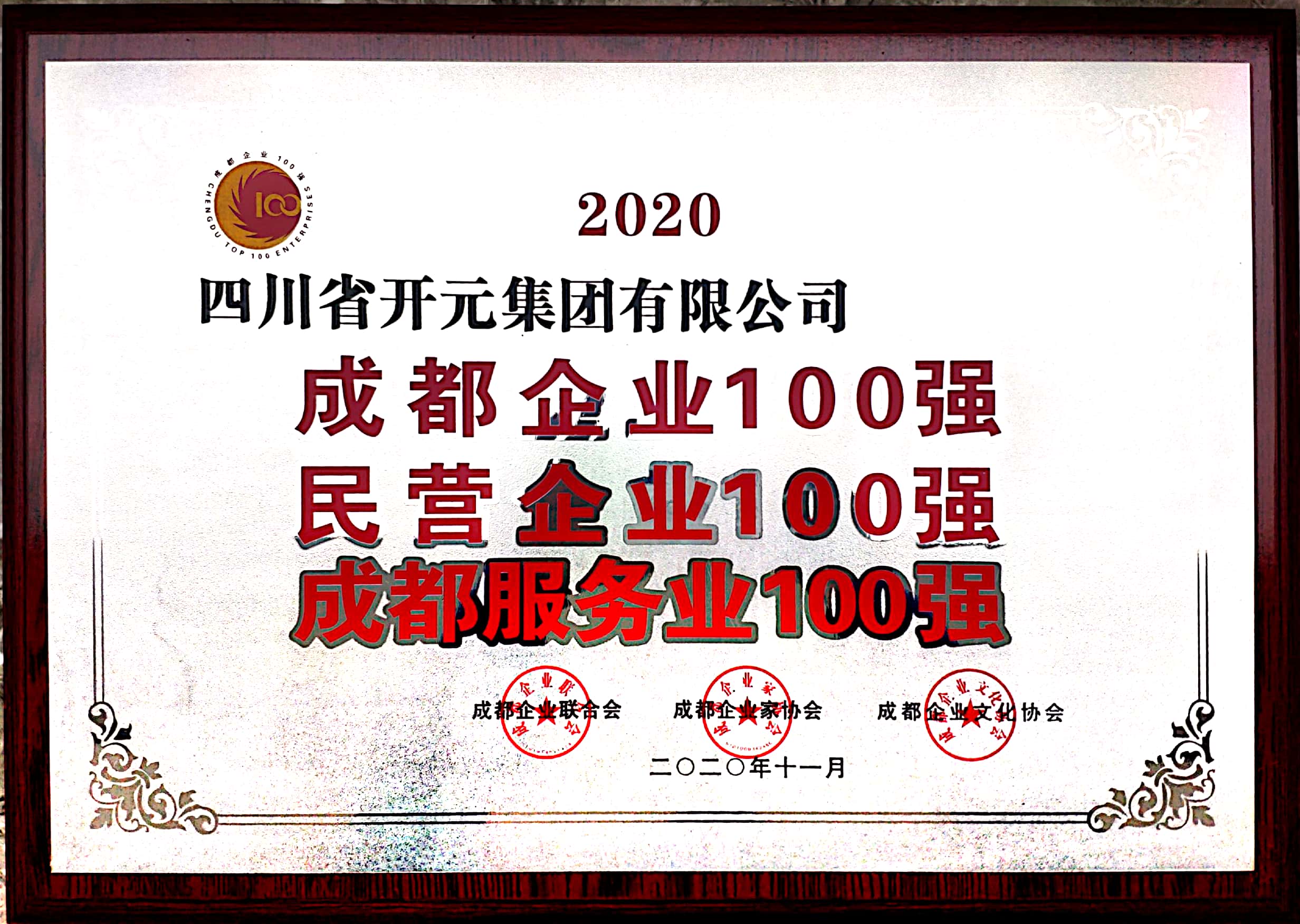 四川開元集團成功蟬聯2020年度“成都市企業100強”、“成都市服務業100強”和“成都市民營企業100強”。