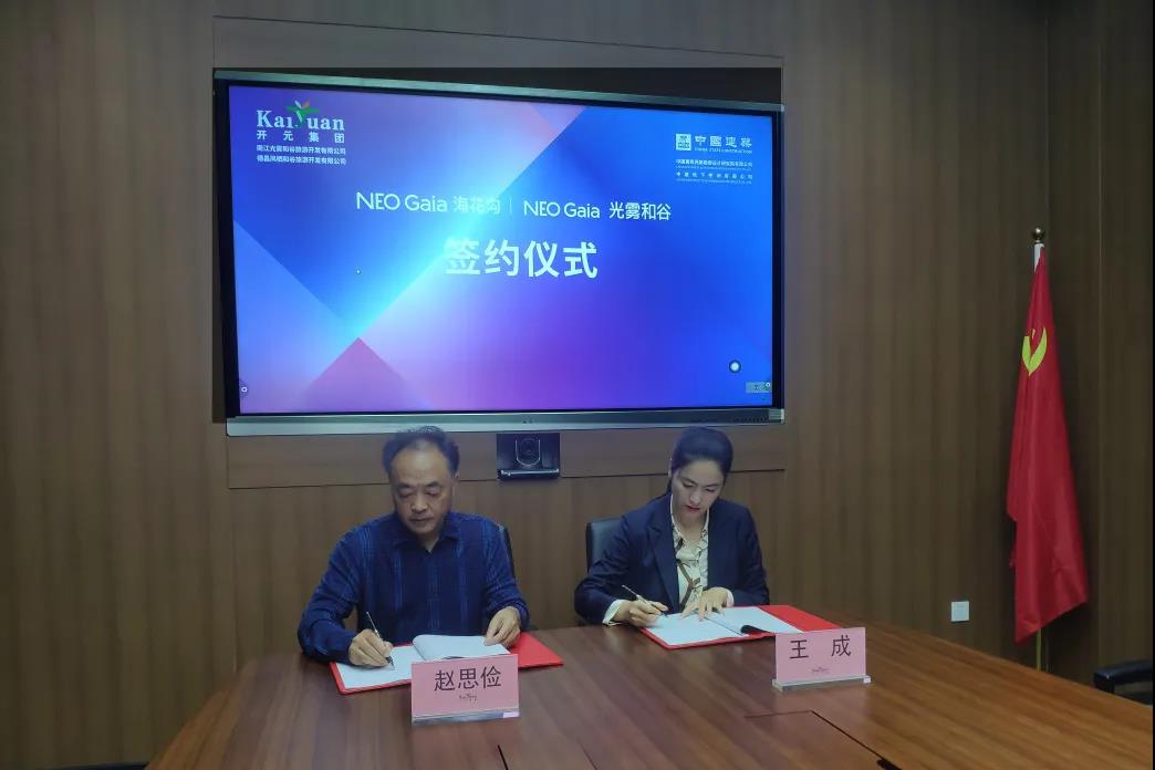 2021年10月29日,四川開元集團與中國建筑集團正式簽約,開啟NEO Gaia光霧和谷和NEO Gaia?;享椖康膽鹇院献?,開元集團董事長趙思儉與中建地下空間有限公司副總經理王成共同簽署了合作框架協議,標志著開元與中建的文旅項目合作正式進入實施階段。未來,項目將由中國建筑行業最強企業承建。
