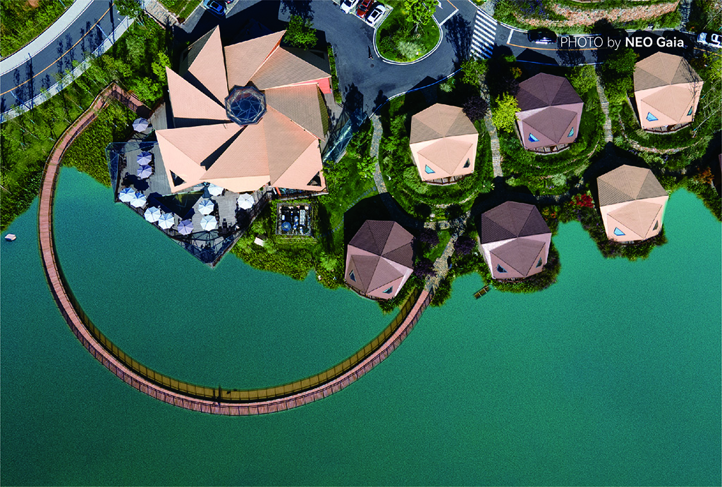 NEO Gaia(霓奧大地)作為一個實踐未來旅居理念的度假品牌,在基于自然的天然狀態下獲得自由與活力,智慧與超越。現已有“光霧和?”與“海花溝”兩個項?,皆屬于NEO Gaia品牌下的?活?式?的地。