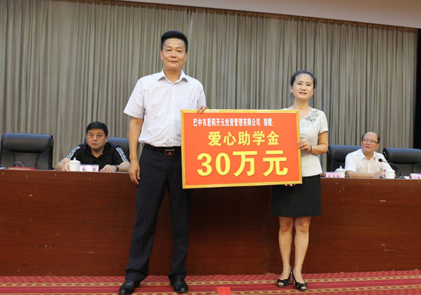 身為巴中籍企業(yè)家,集團(tuán)趙董事長(zhǎng)也始終心系家鄉(xiāng)教育,先后在多個(gè)學(xué)校開(kāi)展捐資助學(xué),設(shè)立獎(jiǎng)學(xué)金,也先后三次參與“金秋助學(xué)”活動(dòng),前后捐贈(zèng)八十余萬(wàn)元,幫助恩陽(yáng)寒門(mén)學(xué)子走進(jìn)大學(xué)殿堂。