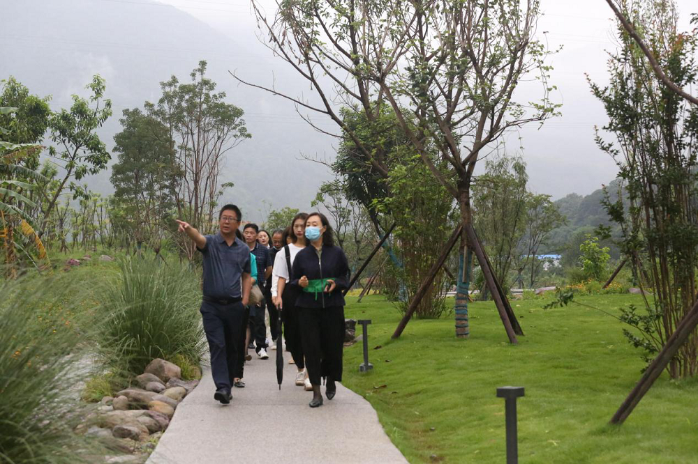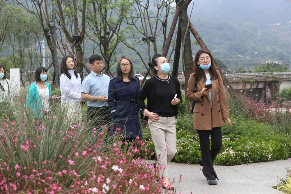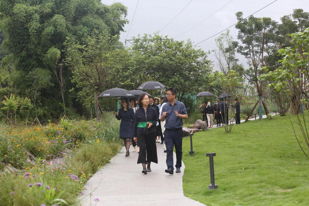 在大地公園景觀步道,大家一路前行,欣賞盛開的百花,感受和煦的清風。李總向客人們詳細介紹了項目景觀的設計理念,花卉苗木的種類和特點等情況。