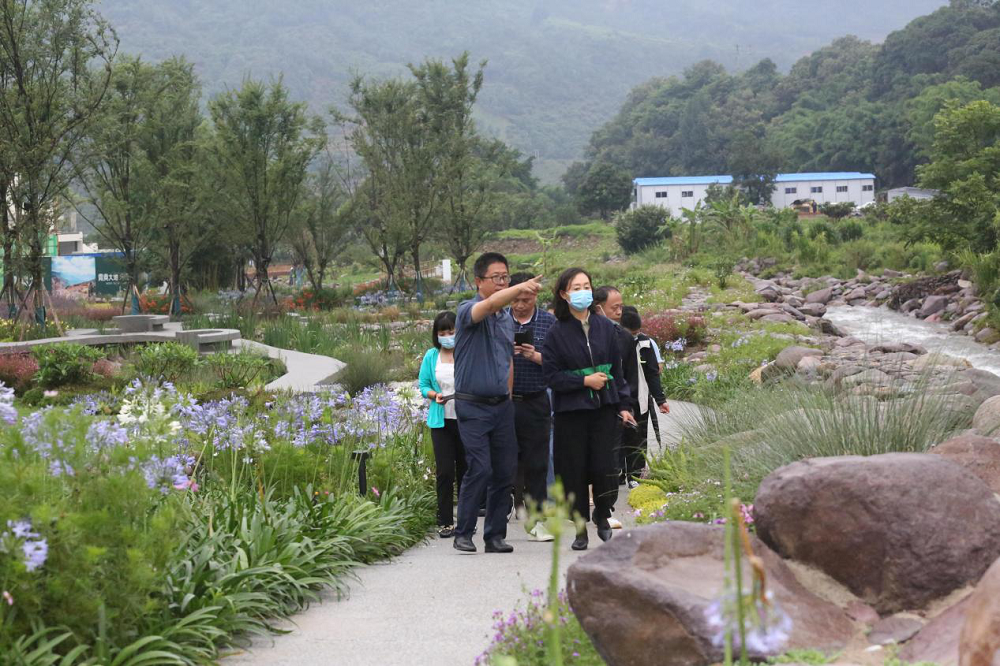 走進海花溝大地公園,在這海天一色的美景下,滿園的花繁草茂,公園里溪流旋轉,叮咚作響,時刻沖擊人們的視覺與聽覺。期間李總向客人們介紹了海花溝項目之前的地勢地貌及原有的景觀特色。