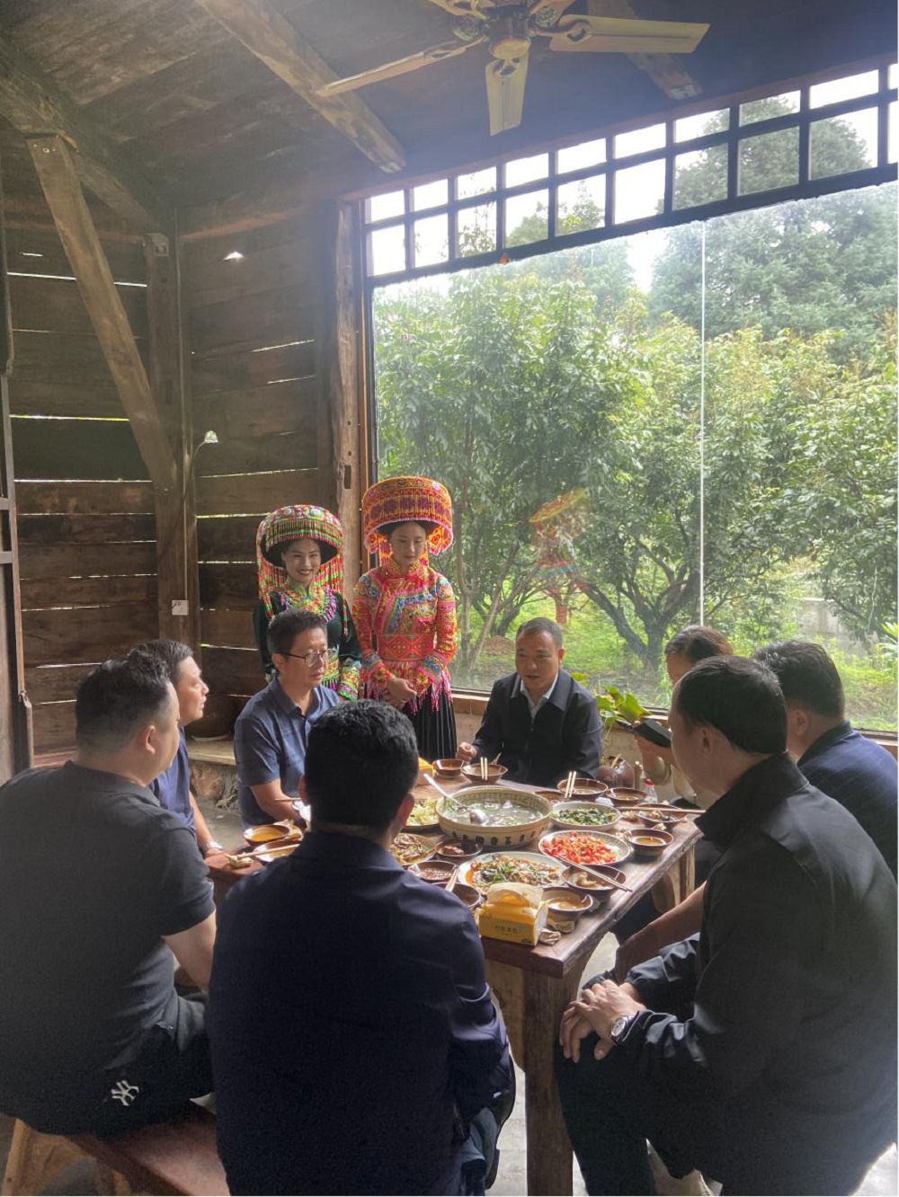 當天中午,在李總的盛情邀請下,德昌縣副縣長高文華及德昌旅游局局長張強與各位貴客前往當地特色的民宿,品當地美食,賞當地民風,期間高縣長及張局長與姜政委交流了兩地的文化特色及風土人情。