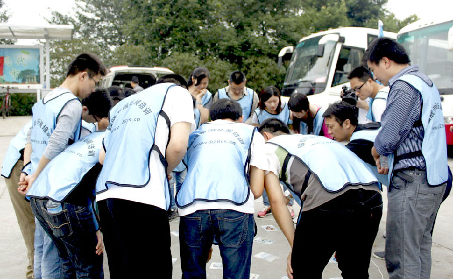 我承認我不是一個記憶超人,有時還會犯糊涂,極速60秒鐘是繼“破冰起航、組建團隊”熱身運動之后的第一科目,30張帶有數字信息的卡片被放置在繩接成的圈內,每個隊有三進入現場看數字信息的機會,每次只有60秒看信息。并要在60秒內將采集數字信息卡片按照數字順序交與培訓師。準確無誤為勝出。這項活動,單憑一兩個人的智慧是無法完成的,且在團隊中協調與分配不好各自的任務,也不可能有效的實現團隊目標。
